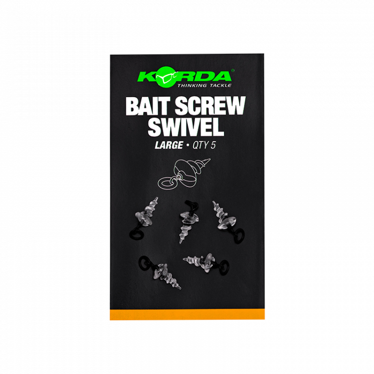 A Bait Screw Swivelnek köszönhetően még sosem volt ilyen egyszeű a horogcsali cseréje, amely másodpercek alatt elvégezhető és használható számos népszerű végszerelékkel. Bármilyen szereléken használhatóak gyűrűk vagy mikrogyűrűk helyett, beleértve a Spinner Riget és IQ D-Riget. Használható fekvő csalikkal, amiket egyszerűen az óramutató járásával megegyező irányban csavarjunk rá. A kialakításnak köszönhetően biztosan tartják a bojlit dobás közben is. Elérhető közepes és nagy méretben. Egy csomagban 5 db található.