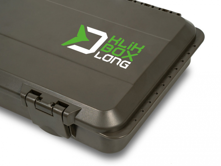 A KlikBOX Long egy keményített habszivacs tálcával és rögzítőtűkkel is fel van szerelve, amelyek megkönnyítik a végszerelékek rögzítését. Az egész előkezsinór tároló rész mentén egy mérőskála található, amely segít a szerelékek pontos hosszának meghatározásában. Az doboz rendkívül tartós műanyagból készül, a két erős műanyag csat pedig kényelmes nyitást és zárást biztosít.