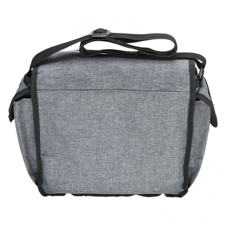 A speciális szürke poliészter anyag könnyen tisztítható és vízlepergető funkcióval rendelkezik, amely megakadályozza a gyors beázást rövid esőzések során. A gumírozott vízálló alsó rész kiküszöböli a nedves talaj beázását. Állítható vállpánt jár hozzá. A belseje PVC-vel bélelt és könnyen tisztítható.