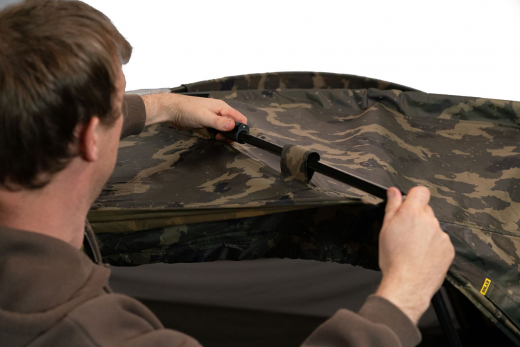 A TRS (Tension Reduction System) rendszer lehetővé teszi a rudak egyszerű szétválasztását, így a bivvy felállítása és lebontása még gyorsabb és könnyebb. Az extra strapabíró és masszív fém központi blokk, valamint a megerősített padlócipzár kiemelkedő tartósságot biztosít. A lapos hátsó fal maximálisan kihasználja a bivvy belső terét, és megkönnyíti a felszerelés tárolását.